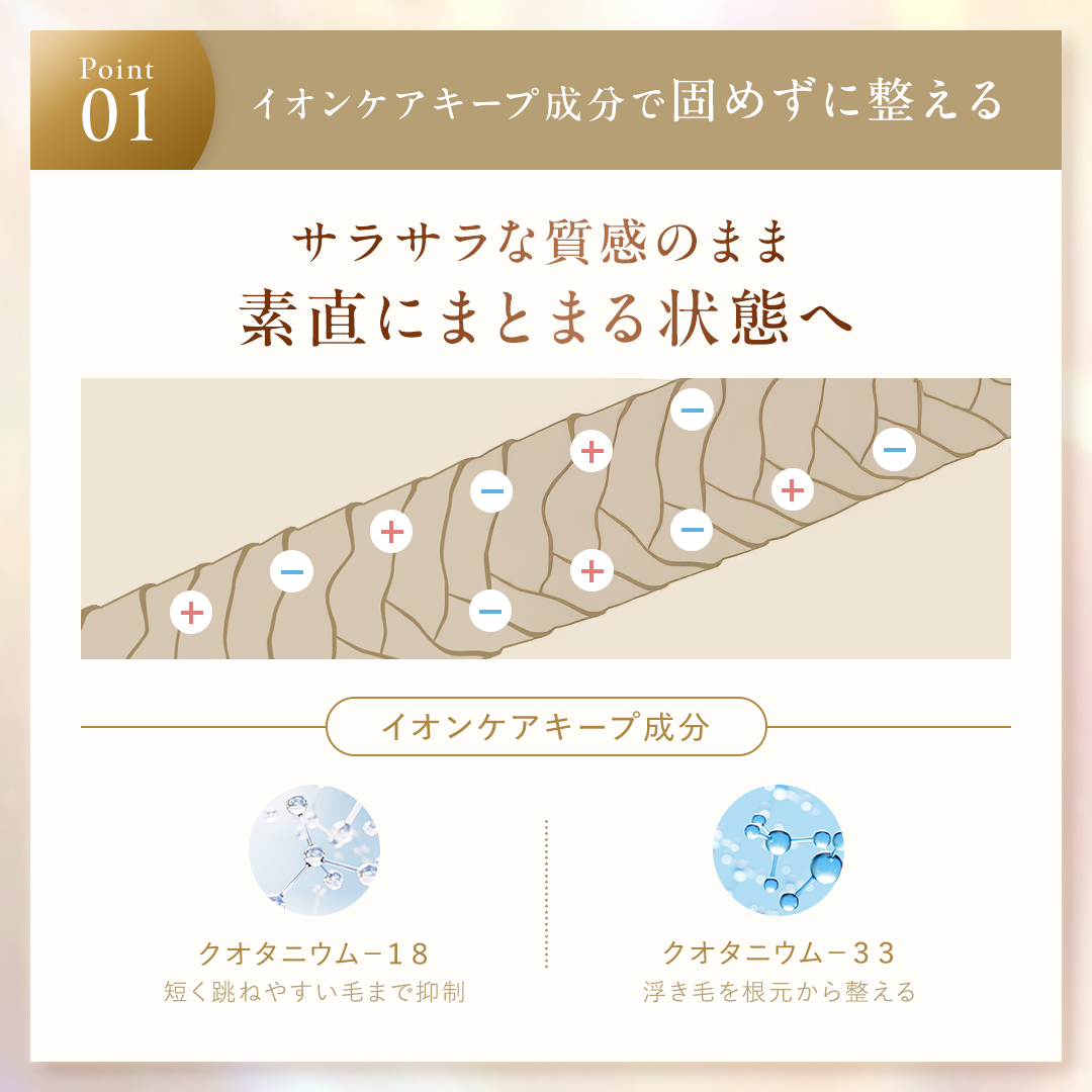 また、ベタつきを抑えた処方と軽やかな質感で、自然なまとまりが長時間続きます。